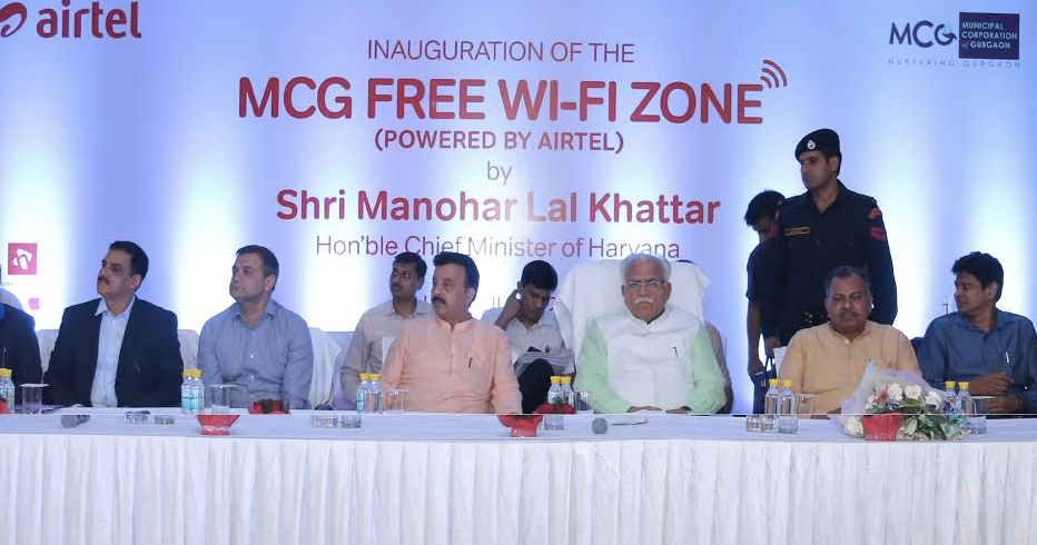Gurgaon has moved one step forward towards becoming fully digitally integrated with the launch of public wi-fi hotspots powered by Airtel in the process of digital India mission. After bagging contract from Municipal Corporation of Gurgaon (MCG) to launch Wi-Fi services in Gurgaon, Airtel launched it’s free wi-fi hotspots services in the city. The initiative was launched today by Shri Manohar Lal Khattar, the Hon’ble Chief Minister of Haryana.