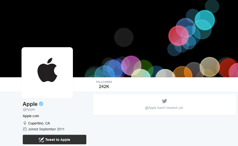 This is a very interesting way to promote and connect with every individual. Apple’ve had their twitter handle @apple since 2011, and they just started using it in a very strange way to promote their upcoming event on September 7 where they’ll introduce new iPhones including some other announcements.