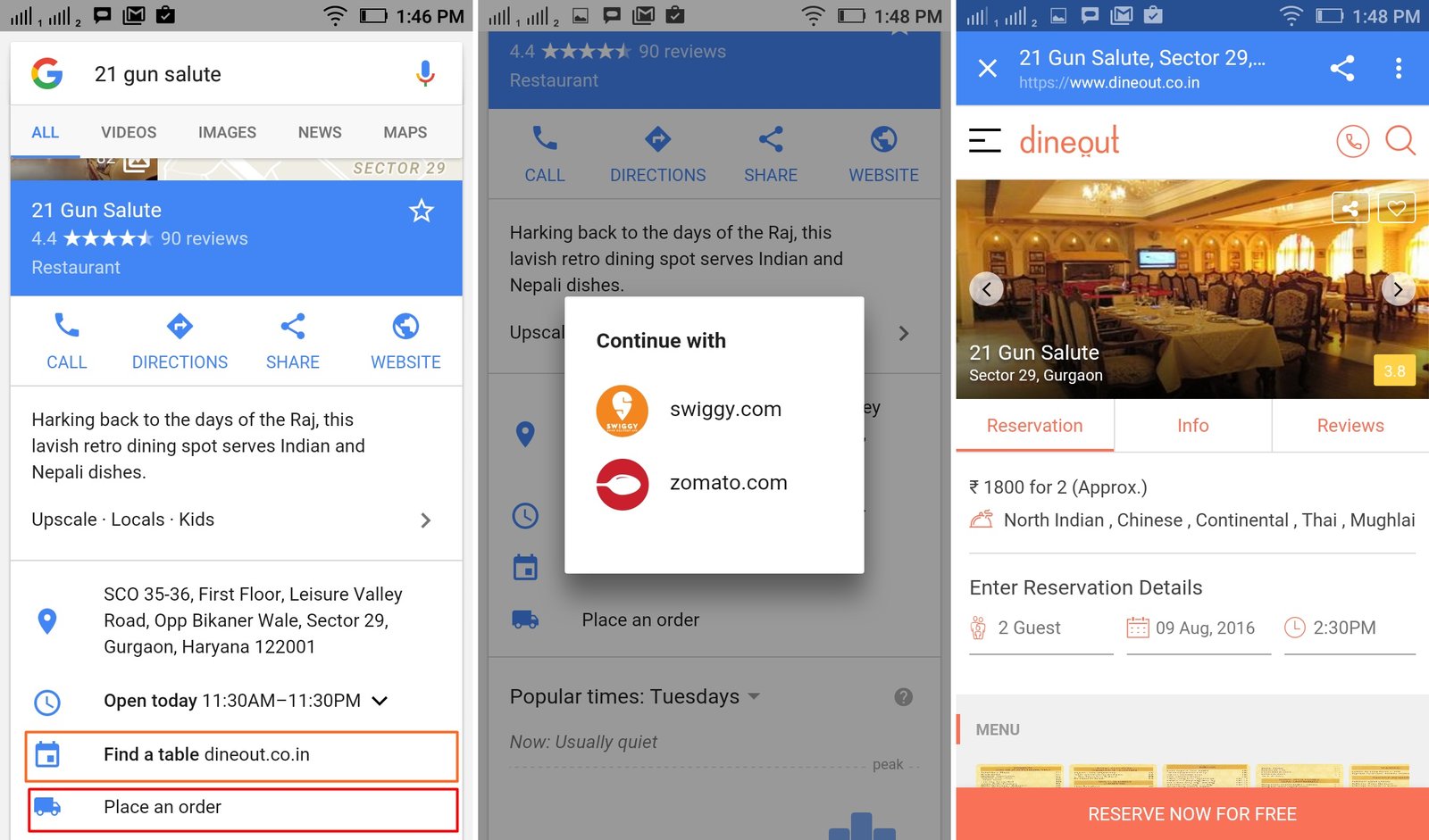Google search now lets you order food & book a table in your fav. restaurants in India
