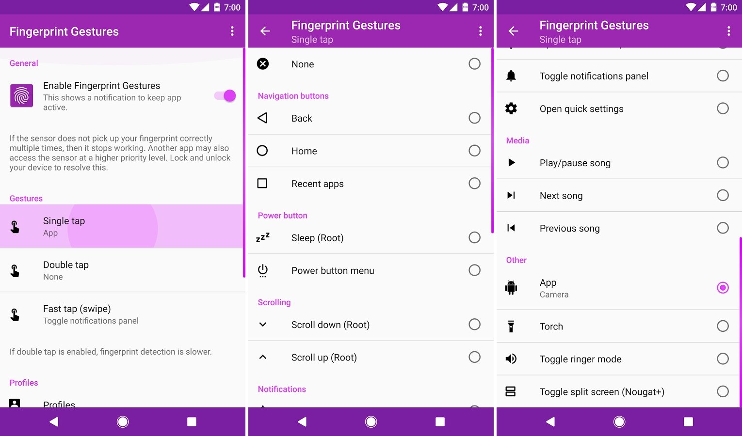 If you have root access, you can perform additional actions like scrolling and activating sleep mode. And also, if you are running Android Nougat on your device, you can toggle split screen mode with any of the gestures without root access.