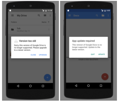 Many of the legacy users stuck on a given version due to many reasons like a hardware issue, a case of not necessarily using an official, complete or current version of Google Play Services. It can be many reasons but its good to have the latest version on your device of any application. The legacy users with very old versions will be forced to upgrade when they receive the above prompt. Starting from April 3, 2017, Google will pull the plug on these legacy versions for good. This goes both for the iOS and Android versions of the G Suite apps.