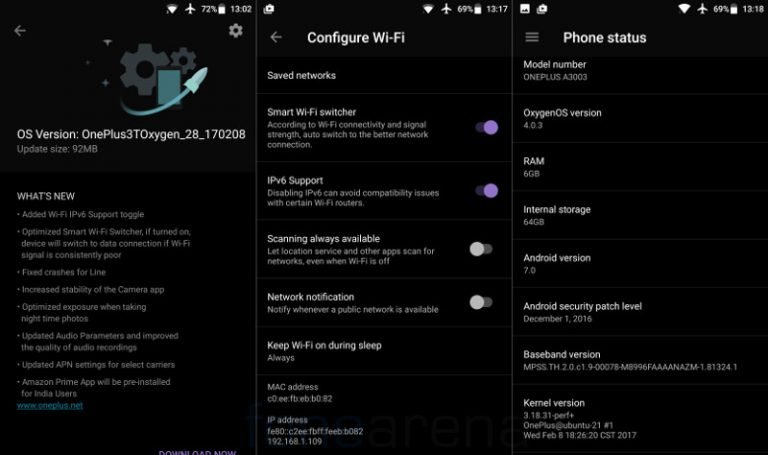 OnePlus is now rolling out OxygenOS 4.0.3 update for OnePlus 3 and 3T smartphones. In order to maintain the company’s reputation, it is providing frequent updates to users. This Android 7.0 Nougat based update, the OnePlus has done several improvements to the platform stability by fixing bugs. It also brings pre-installed Amazon Prime app for users in India. It also includes Smart Wi-Fi Switcher with updated APN settings which switch to data connection in case the Wi-Fi signal is consistently poor.