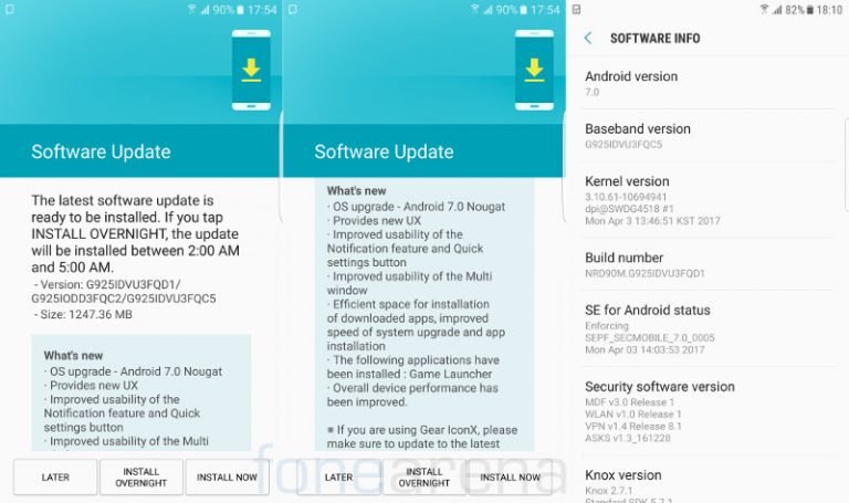 The Android Nougat OTA update comes with build number G920IDVU3FQD1 for Galaxy S6 and weighing around 1235.04MB in size, while the Galaxy S6 edge is receiving the update with build number G925IDVU3FQD1 and 1247.36MB in size. It also includes Android security patch for the month of March 2017.