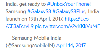 Samsung’s next big flagship coming to India next week. Samsung Mobile India has confirmed that it will launch its flagship Galaxy S8 and Galaxy S8+ smartphones in India on April 19th. Both the phones are expected go on sale starting April 21st along with the global launch. Also the pricing details will be revealed next week at the launch. Samsung Galaxy S8 and Galaxy S8 Plus were introduced last month. If sources are to be believed the smartphone will be priced at Rs 59,999 in India.