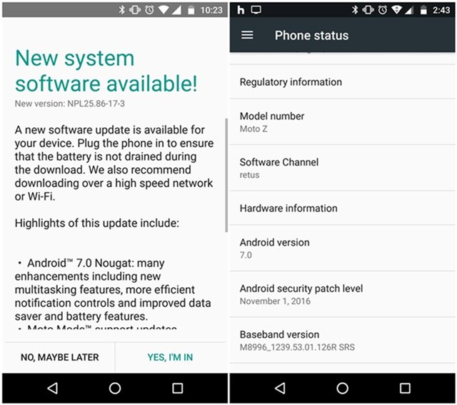 Motorola has finally started rolling out Android 7.0 Nougat update to unlocked Moto Z units in the United States. The Moto Z Android Nougat update brings software build number NPL25.86-17-3. This update also includes Daydream certification that makes the handset compatible with Google’s VR platform Daydream.